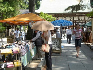 Each booth sells a variety of things: decorations, seasonal flowers, fresh vegetables and fruit, hand made items, antiques, daily goods, clothes and so on.